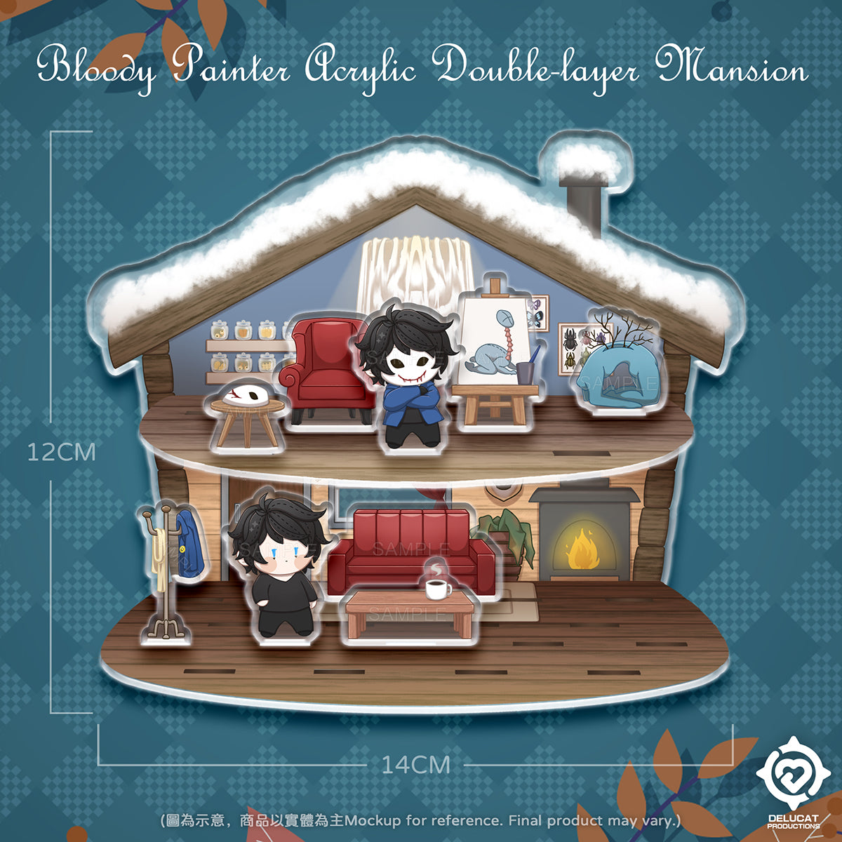 小物件插槽尺寸一致﹐可自由變換擺設位置。全部9個小物件、2片底板、1片背板。尺寸︰房屋長14CM*高12CM繪師︰羽毛筆 @yumaubi